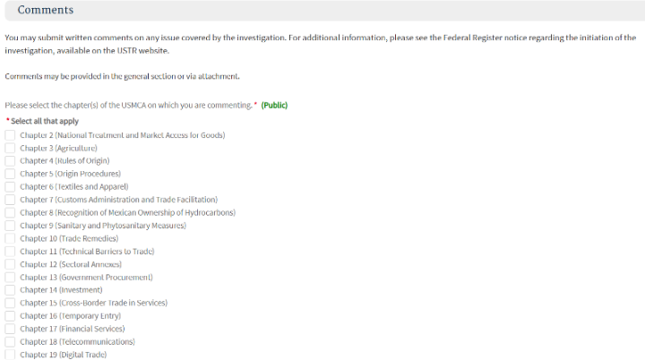 a. Select the chapter(s) of the USMCA on which you are commenting